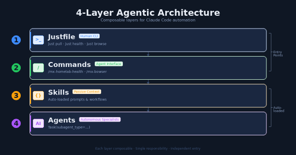 The Problem # After months of building Claude Code extensions – agents, skills, commands, hooks, MCP servers – I had a growing collection of powerful tools with no coherent entry point. Want to pull all repos? Run a shell script. Want to check infrastructure health? Ask Claude and hope it knows which command to use. Want to automate a browser task? Figure out whether to use the MCP plugin or write a script.